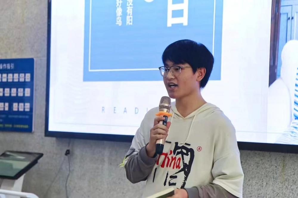 13:10分,读书分享会正式开始。首先,由学院团委副书记余敏致辞,余敏书记详细介绍了世界读书日的由来,并鼓励大家通过阅读增长见识,开阔视野,提升思维认知。希望同学们多读书,读好书,培养良好的阅读习惯,学会在书的海洋中汲取智慧和能量。