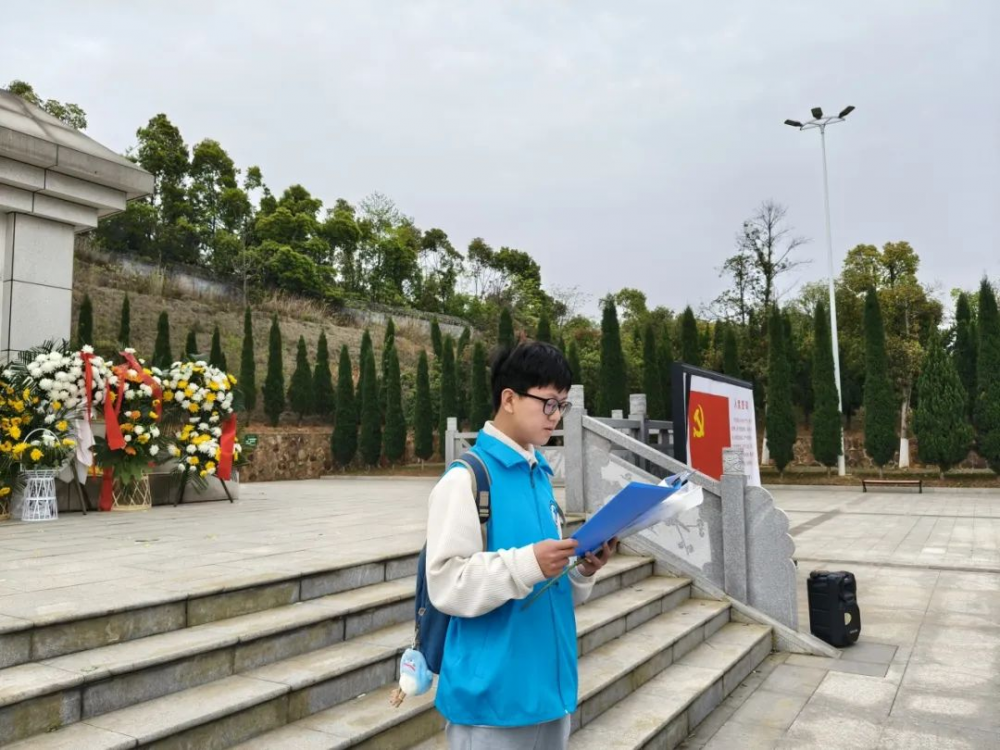 随后,学生代表怀着满腔的敬意发言,他的话语掷地有声:“先辈们以热血浇灌理想,用生命捍卫信仰,才有如今的盛世安宁。作为新时代大学生,我们站在历史的新起点,定当以先烈为榜样,把爱国之情、报国之志融入到日常学习中,努力成为社会的栋梁之材 。”